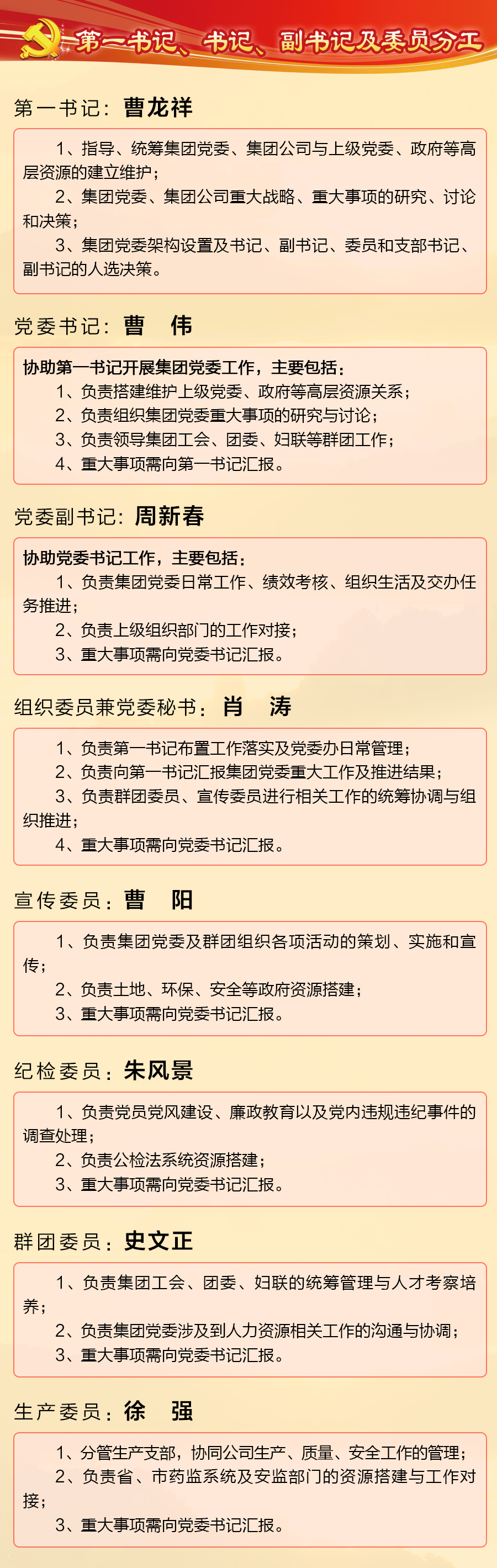 会议还确定产生了集团党委同心支部、营销支部、研发支部、生产支部、行政支部、财经支部等支部成员名单及职责分工。